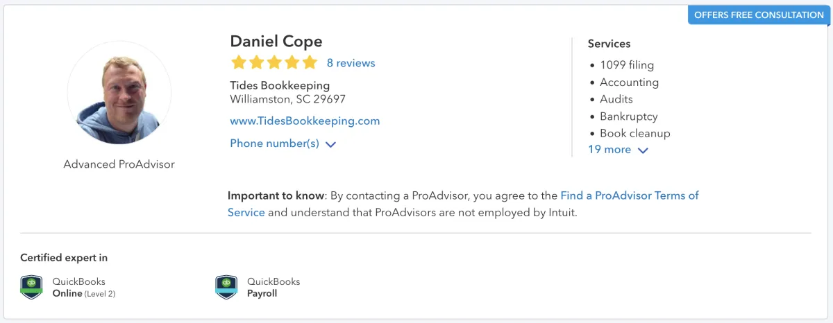 (Select Below to View QuickBooks ProAdivsor Profile Online)